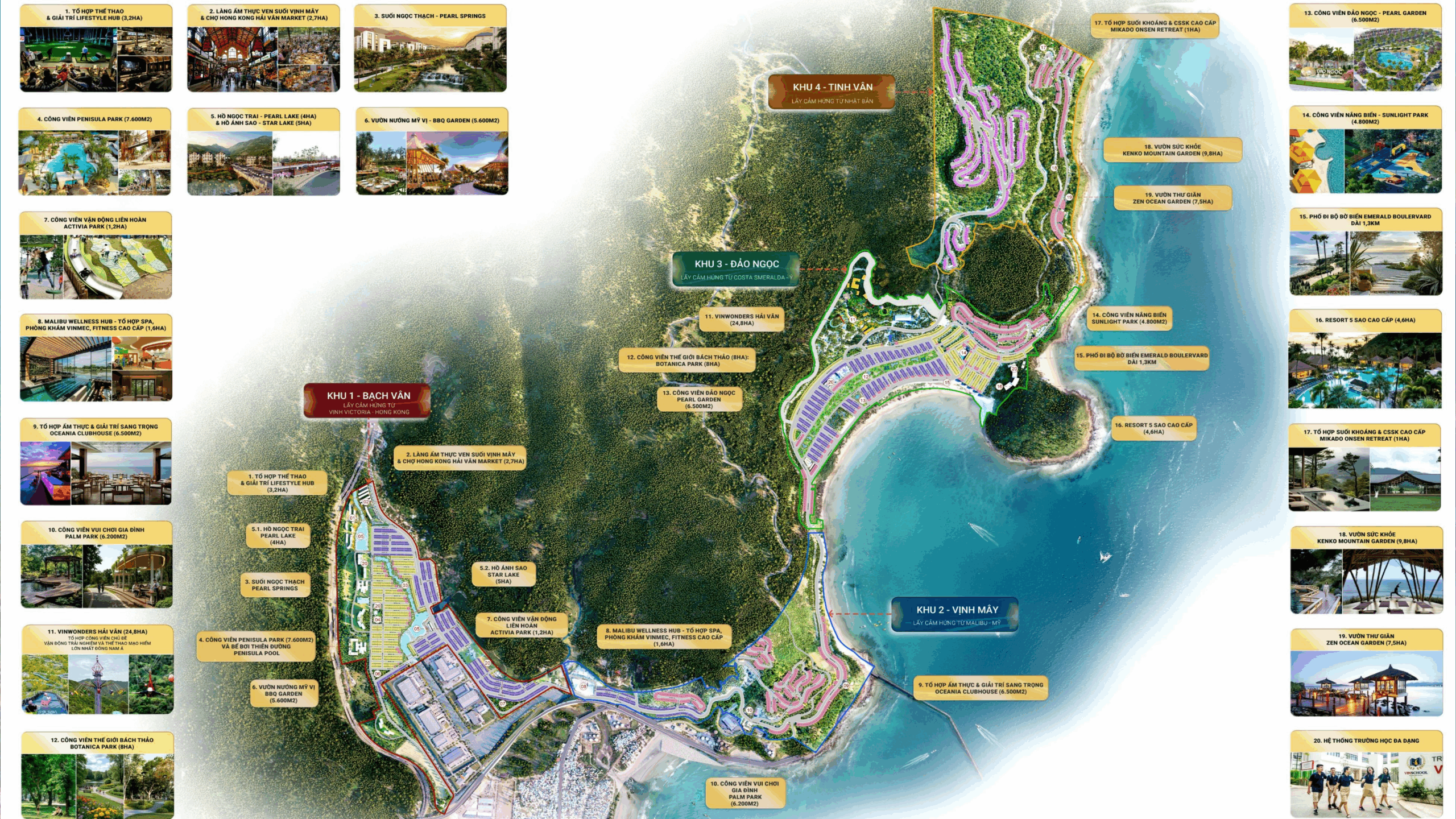 Tổng thể dự án được chia làm 4 phân khu, với mỗi chức năng và định vị khác biệt hướng đến những nhu cầu sử dụng khác nhau, đa dạng loại hình sản phẩm.